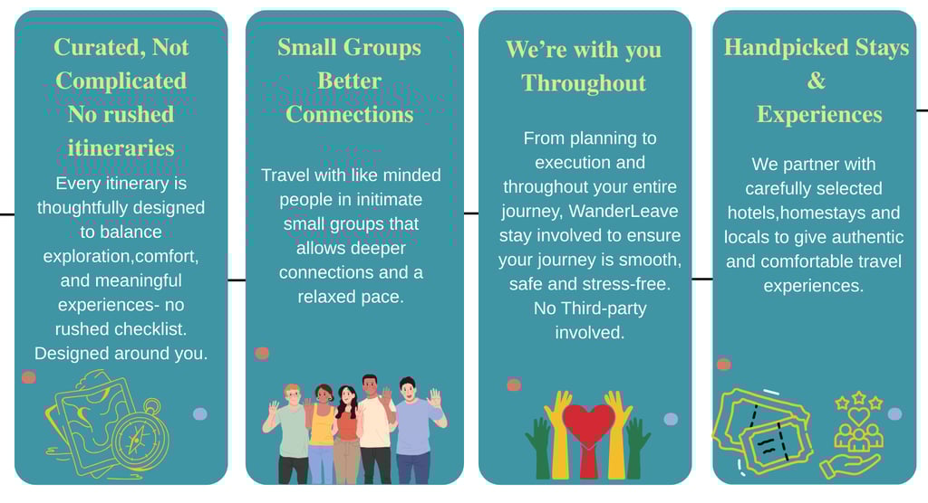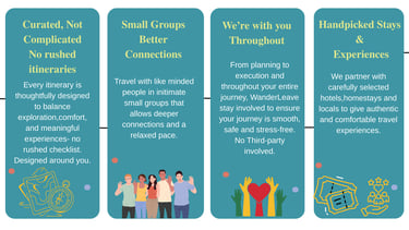 At WanderLeave, we craft journeys that go beyond the usual, blending adventure with comfort and local charm.